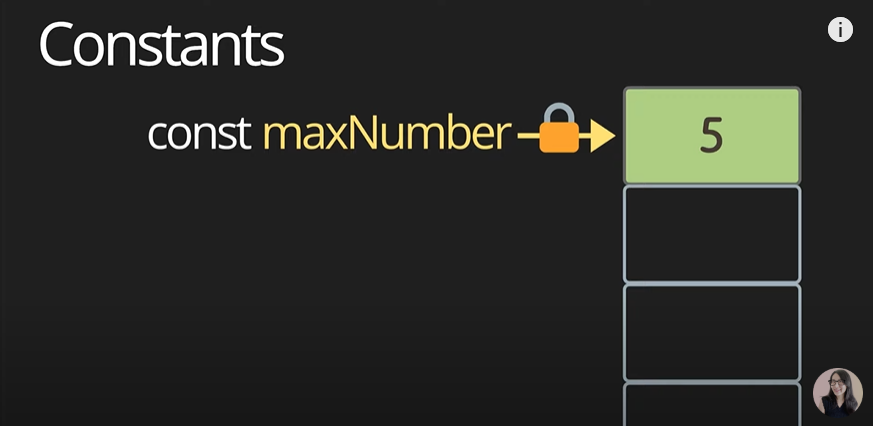 - 우리가 변수를 이용하면 변수가 메모리 어딘가에 할당된 박스를 가리키고 있어서 포인터를 이용해서 값을 계속 바꿔나갈 수 있었는데, const 는 가리키고 있는 포인터가 잠겨있어서 값을 선언함과 동시에 할당한 이후는 값을 다시는 변경할 수 없습니다.